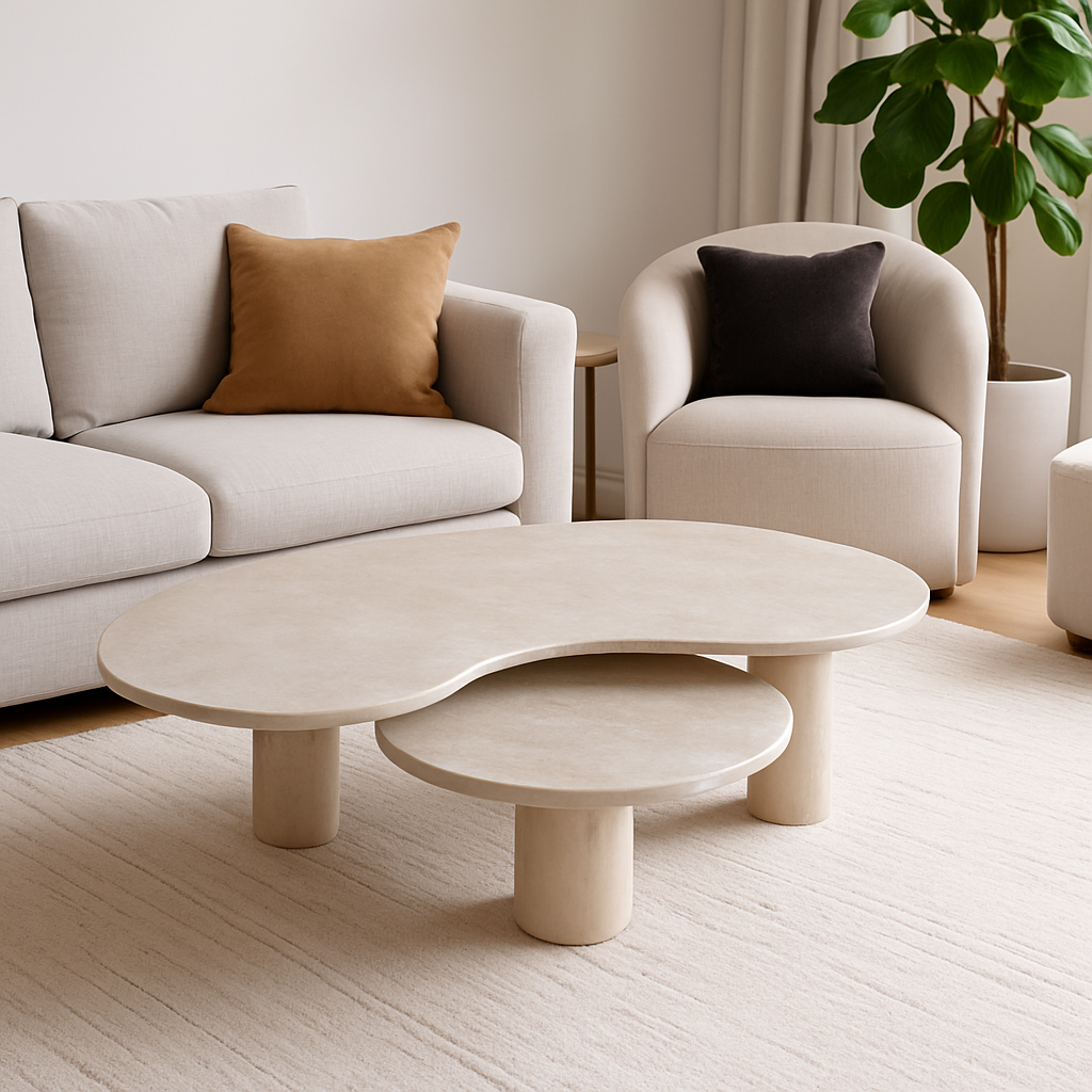 Our marble table collection brings together soft organic forms and bold stone presence. Each piece is thoughtfully designed to balance sculpture and utility