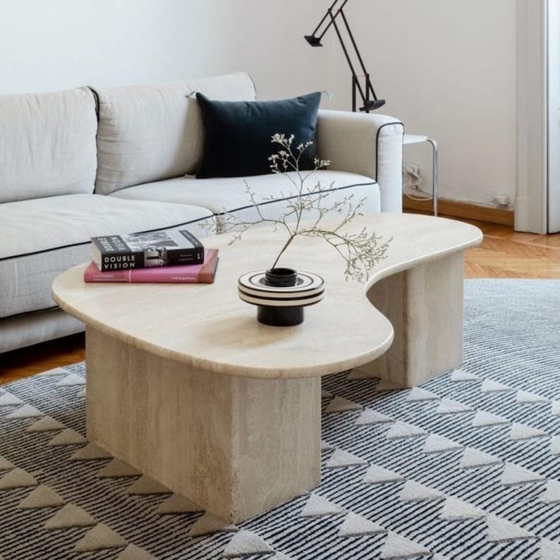 Travertine Coffee Table for Living Room Decor, Scandinavian Table