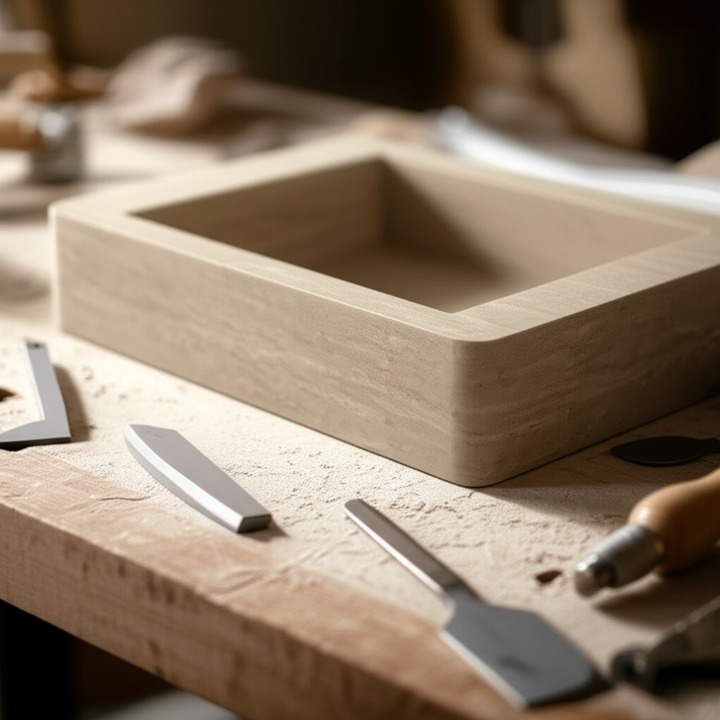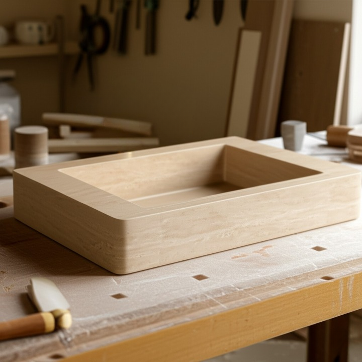 30" Rectangular Travertine Stone Sink – Handcrafted Bathroom Basin