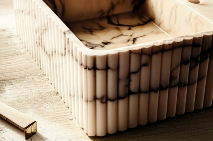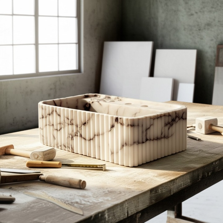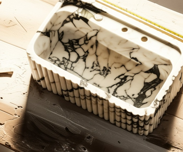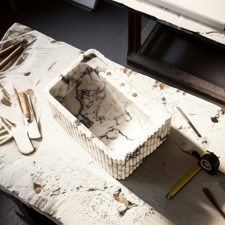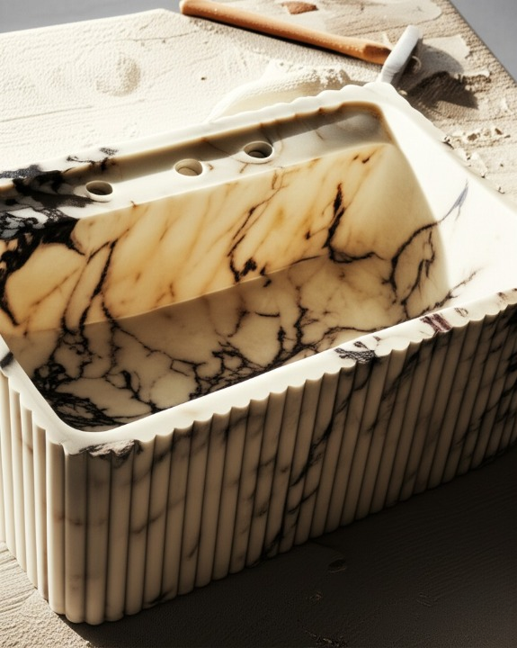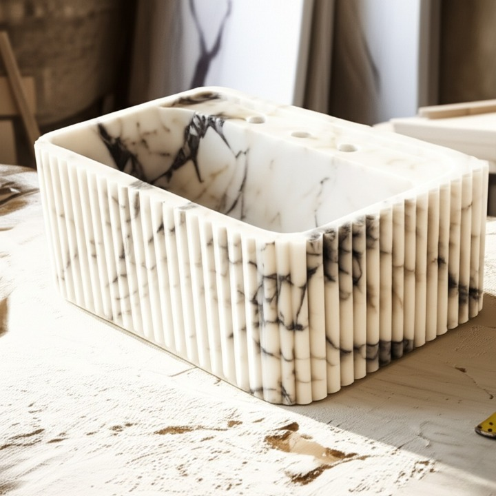 Calacatta Viola Marble Fluted Wall-Mounted Sink – Rectangular