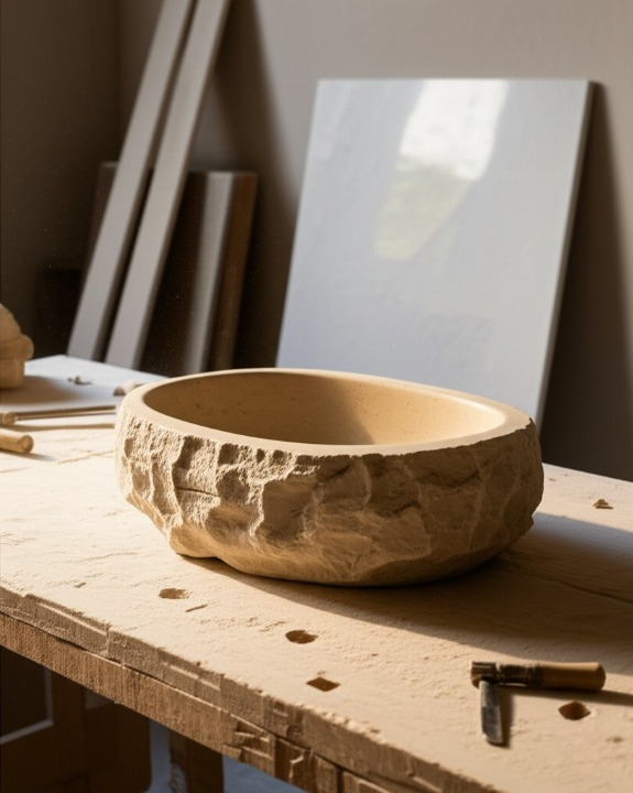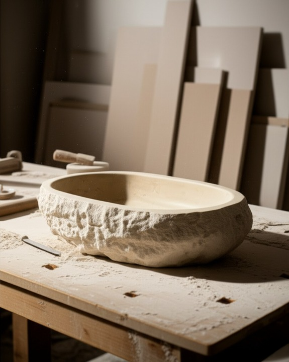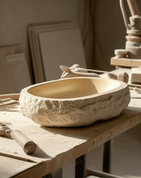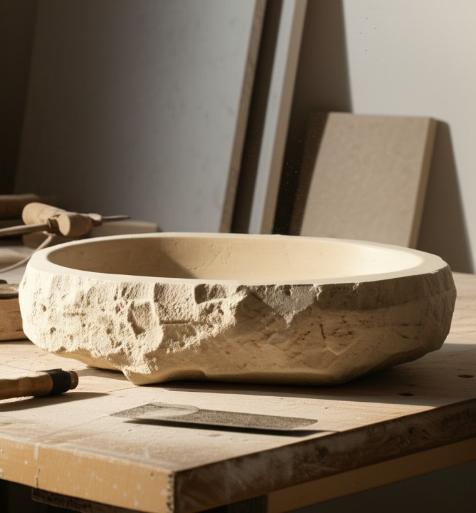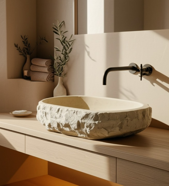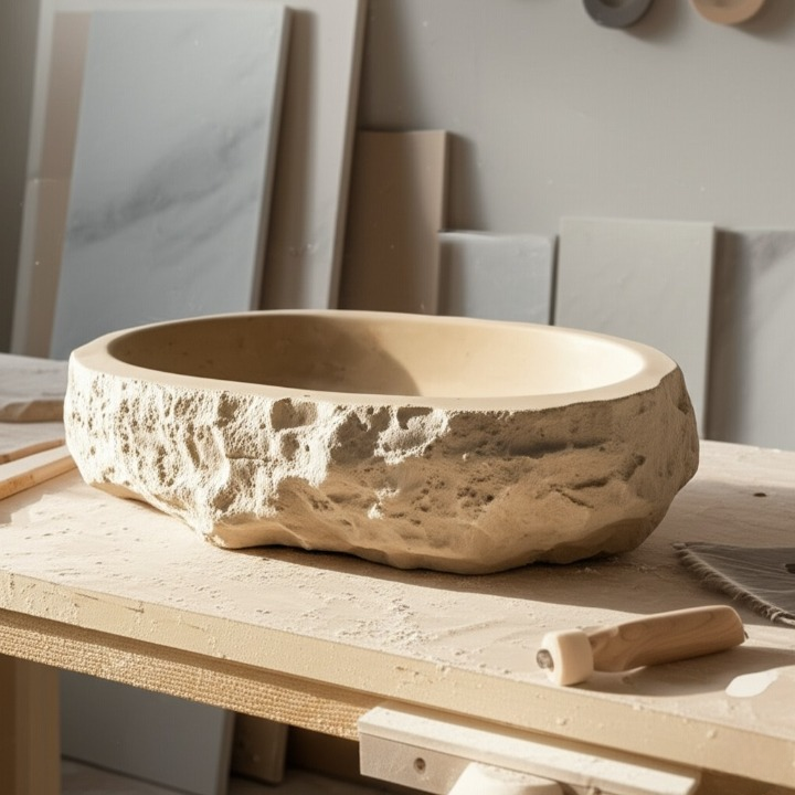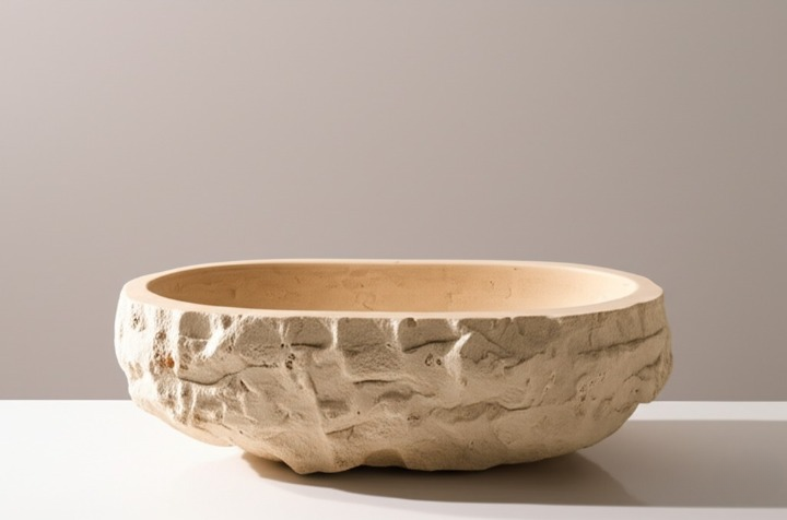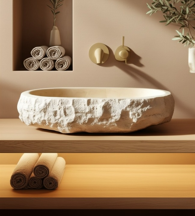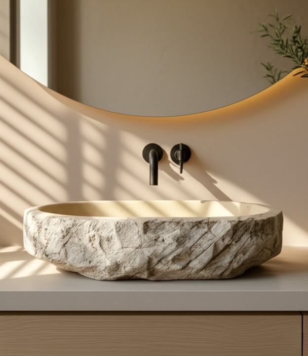 Rustic Oval Travertine Stone Sink – Hand-Carved Bathroom Basin