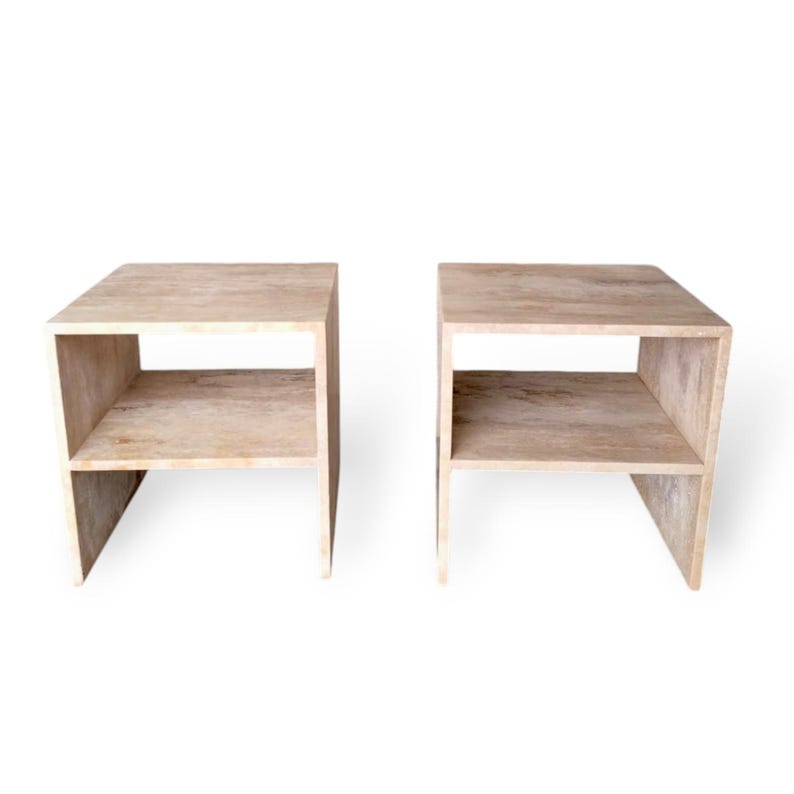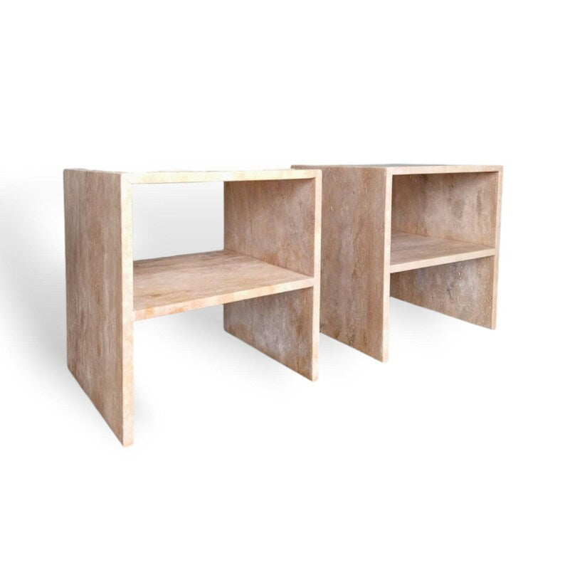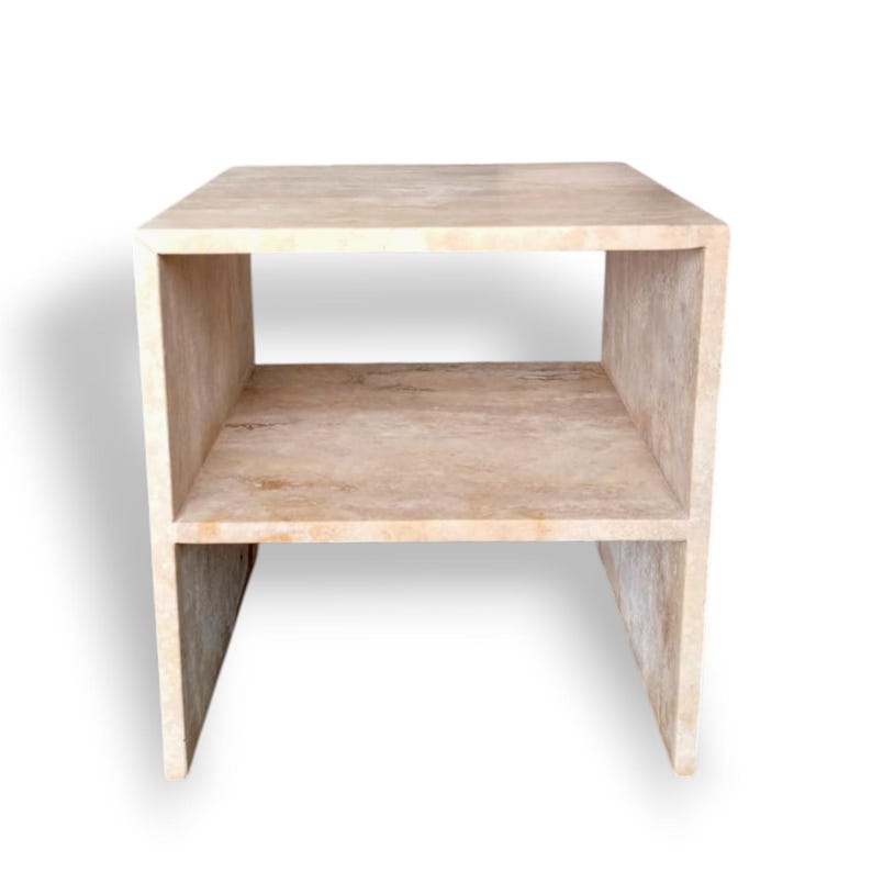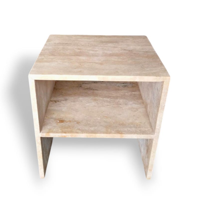 Enhance your living space with the beauty of natural travertine. This handcrafted side table blends minimalist design with the warmth of natural stone, creating a sophisticated and versatile piece for any interior. The clean lines and open shelf design make it perfect as a bedside table, end table, or statement accent piece. Each table is uniquely crafted, showcasing the organic texture and patterns of the stone, ensuring no two pieces are alike. A true fusion of functionality and artistry, this table will bring a luxurious and timeless touch to your home.