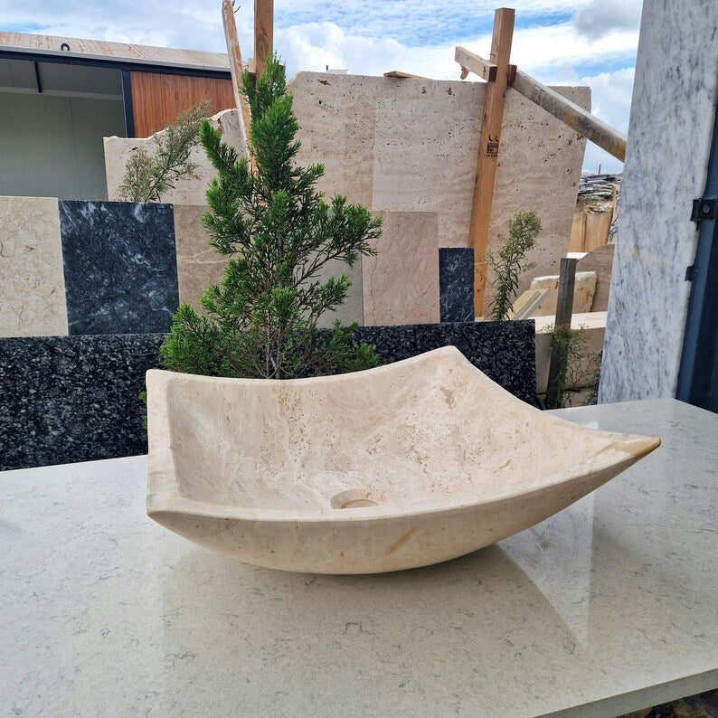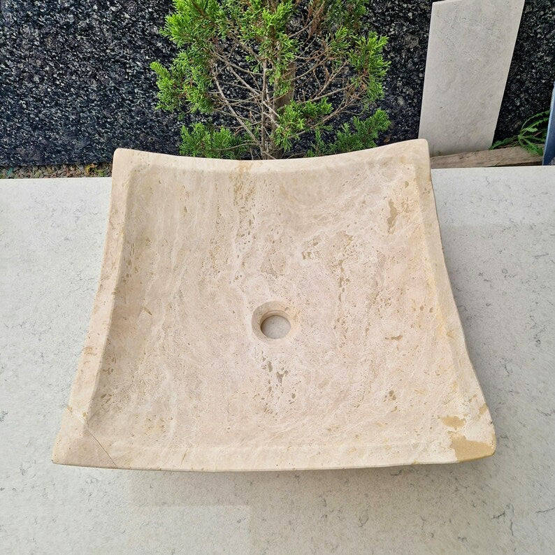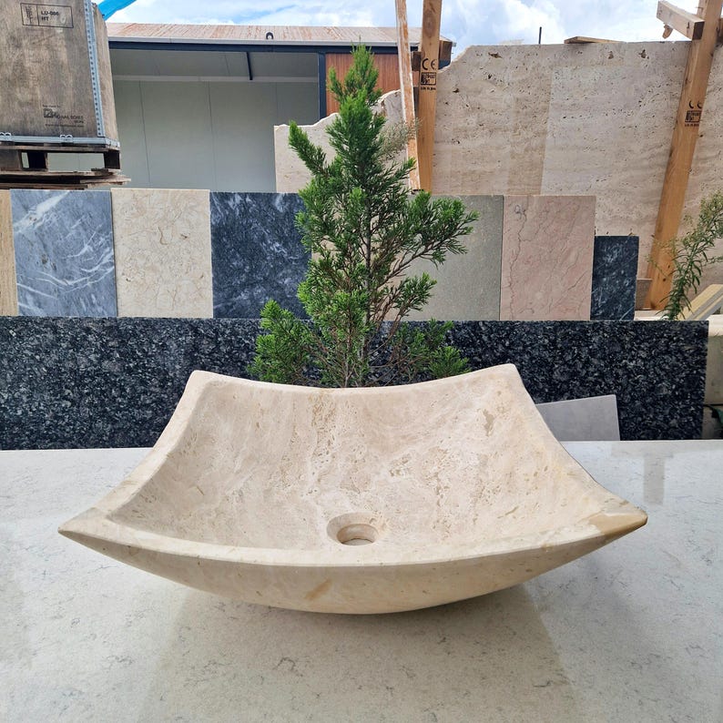 Bring a touch of natural beauty and artisan craftsmanship to your bathroom with this stunning handcrafted travertine sink. Carefully shaped from travertine, this unique piece combines functionality with timeless design, making it a statement addition to any space.